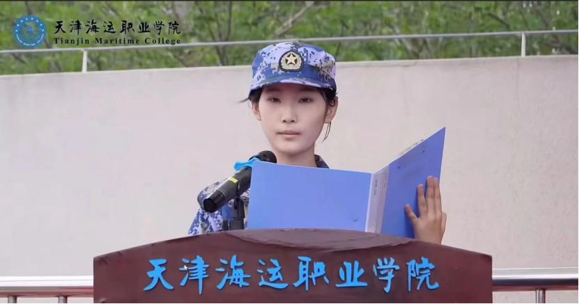 航运经济系物流24-1班学生李可然代表全体参训新生表达了对军训的期待与决心,承诺将以军人的标准严格要求自己,听从指挥,服从命令,以饱满的热情、顽强的毅力投入到军训中,展现海运学子的风采与担当。